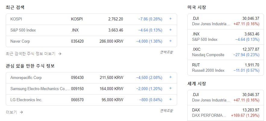 이럴 경우 야후 파이낸스를 통해서 실시간 시세 정보를 확인할 수 있습니다. 또한 인베스팅 닷컴을 통해서 전 세계의 지수를 확인하는데 용이합니다.