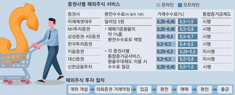 해외 주식 거래 시 가장 주의할 대목은 환전수수료입니다. 원화를 달러로 환전할 때 대부분의 증권사에서 회사별 매매 기준 환율의 약 1%를 기본적인 환전수수료로 두고 있습니다.