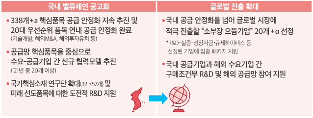 미래 선도품목에 대한 도전적 R&D 지원 과 함께 글로벌 진출 확대를 위한 지원