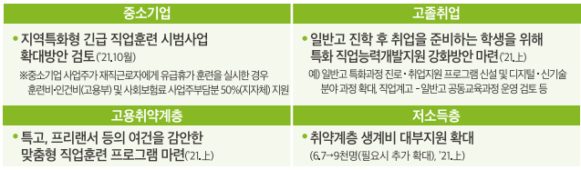 고용 취약계층에게 직업 교육 과 훈련제도 확대하는 방안을 검토합니다.