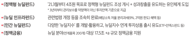 정책형, 뉴딜 인프라, 민간, 정책금융등 뉴딜 금융을 본격 확산