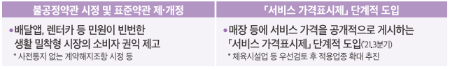 - 매장 등에 서비스 가격을 공개적으로 게시하는 서비스 가격표시제 단계적 도입(체육시설업 등 우선검토)