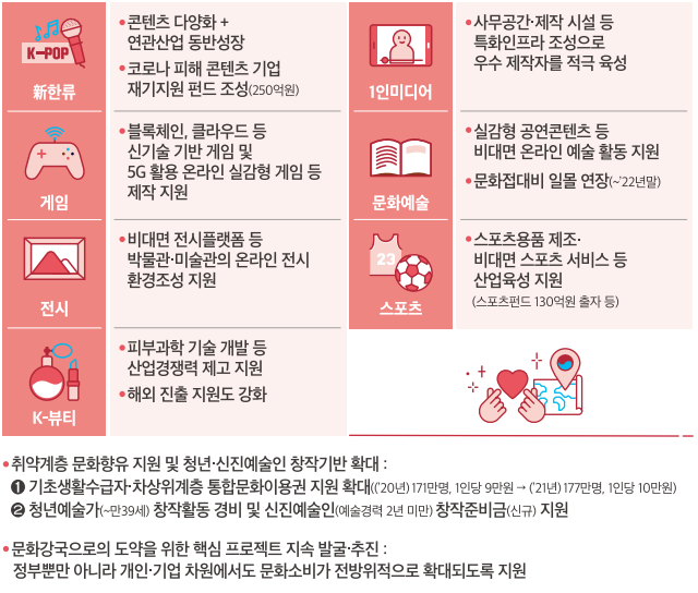 - 한류 성과가 지속 및 도약하도록 전방위적 지원 집중