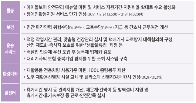 ◆ 필수 노동자 삶의 질 개선을 위한 다각적 노력 추진