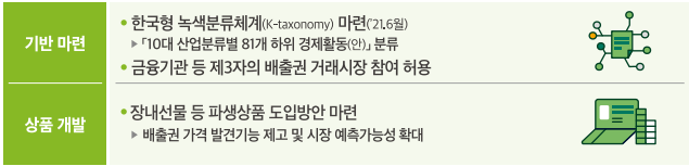 한국형 녹색분류체계 기반을 마련하고 장내선물 등 파생상품 도입 방안을 마련