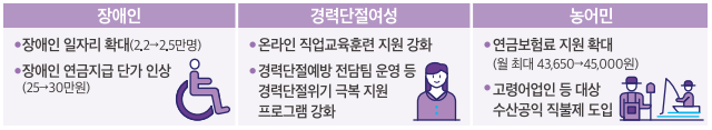 ◆ 장애인, 경력단절여성, 농어민 등 취약계층을 촘촘히 지원