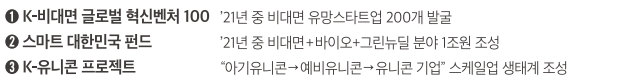 21년 중 비대면 유망 스타트업 200개 발굴, 비대면 + 바이오 + 그린뉴딜 분야에 1조원 스마트 펀드 계획 수립