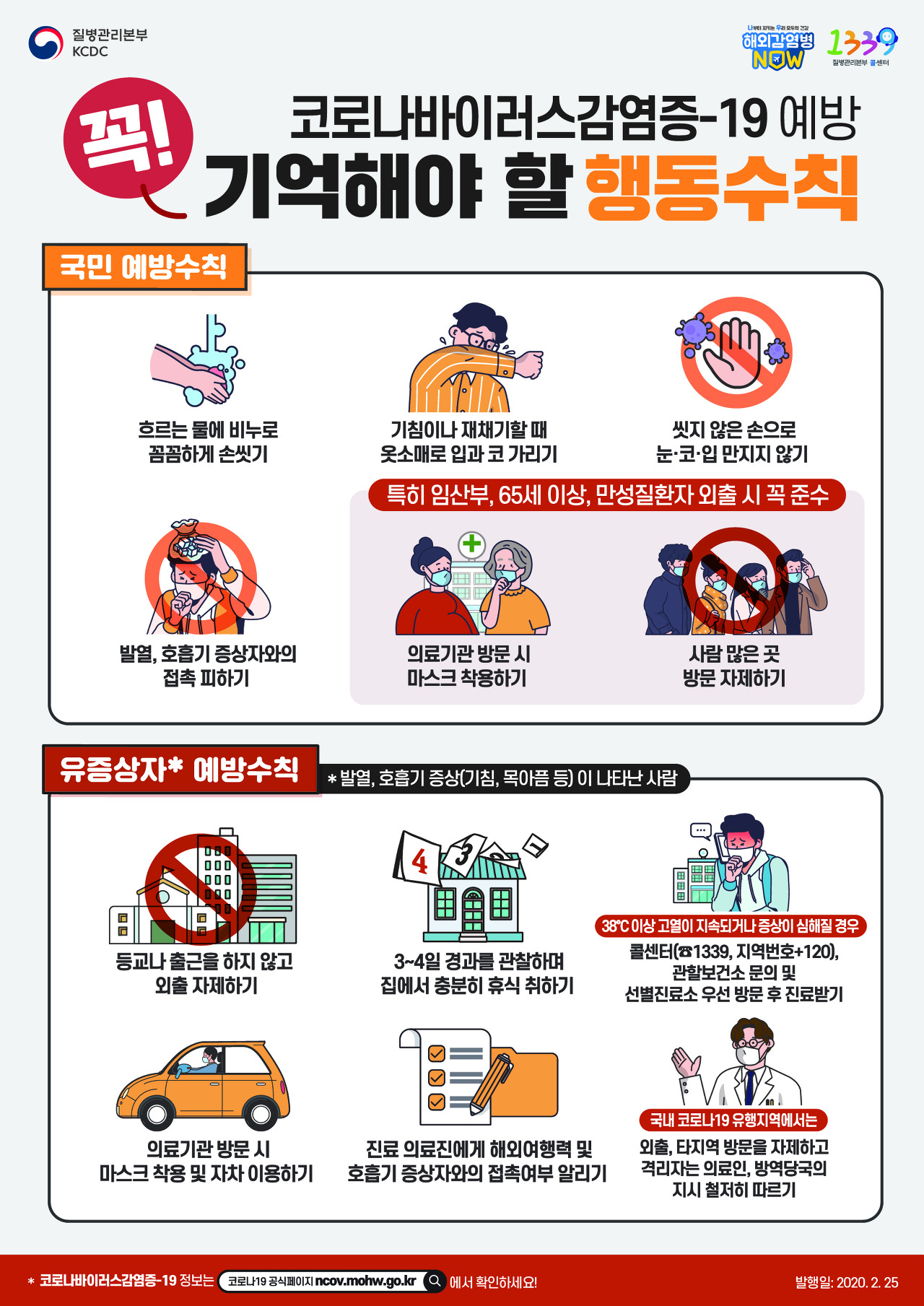 이에 따라 바이러스로 부터 우리를 지켜줄 행동 수칙을 안내드리겠습니다.