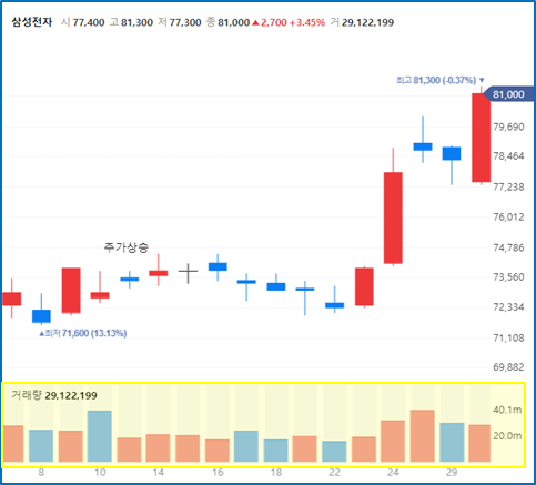 주가 상승 및 거래량 상승