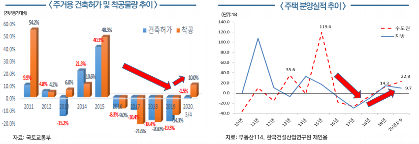 - 주택투자관련 선행지표인 인허가 및착공물량, 분양물량은 2020년 들어 회복세 시현