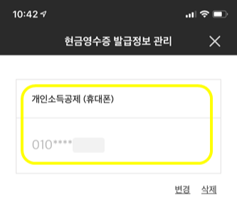 저는 현재, 번호로 현금영수증 정보가 입력되어 있는 상태입니다.
