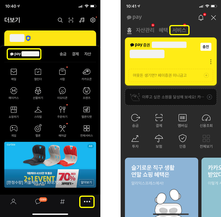 카카오톡에서 카카오페이로 접속하는 과정은 간단합니다.