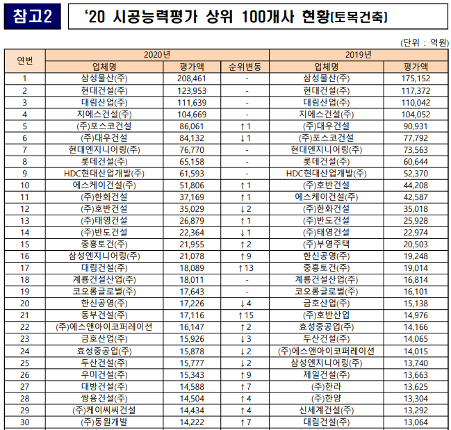 오늘은 국도교통부에서 발표한 시공능력평가 결과를 정리해 보았습니다.