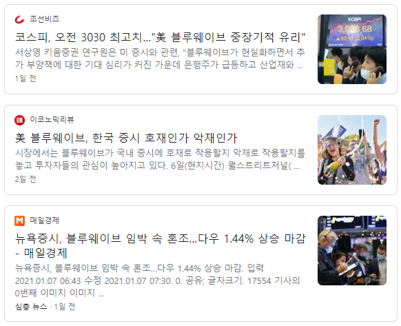 오늘은 블루웨이브의 의미와 국내 증시 영향에 대해 정리하겠습니다.