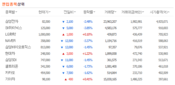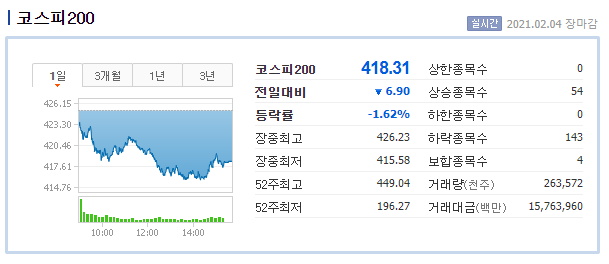 - 시가총액 : 코스피시장에 상장된 대표 200종목의 시가총액 합