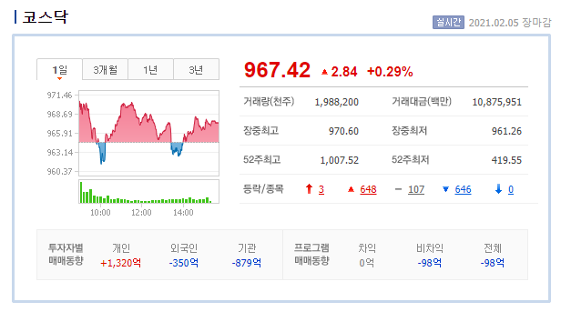 코스닥 지수란 코스코스닥에 상장한 기업들의 시가총액을 나타낸 지수입니다.
