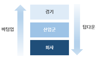 즉, 경기파악을 먼저하고, 산업군을 선택하고, 회사를 선택하는 방법입니다.