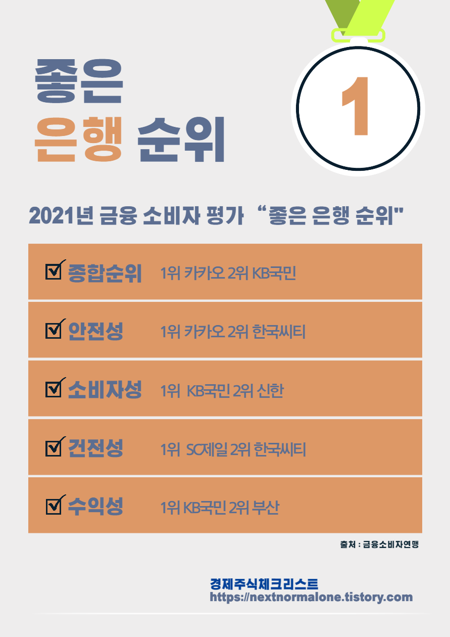 거래은행을 선택하거나, 은행들간의 순위를 확인해 보기위해 소비자 입장에서는 많은 고민이 필요합니다.