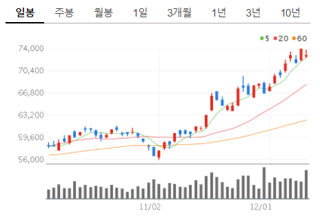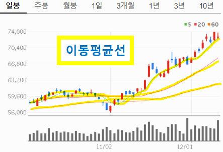 즉 이부분은 각각 5일, 20일, 60일의 이동평균선입니다.