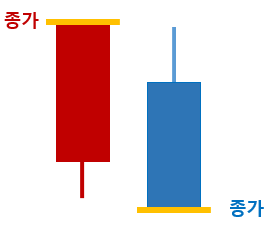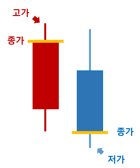 차트라는 것은 알겠는데 빨간봉과 파란봉이 보이시죠? 이것을 봉차트라고 합니다.