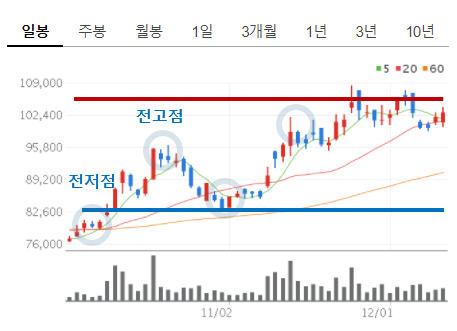 전고점 : 기준 지점으로 부터의 이전 고점
